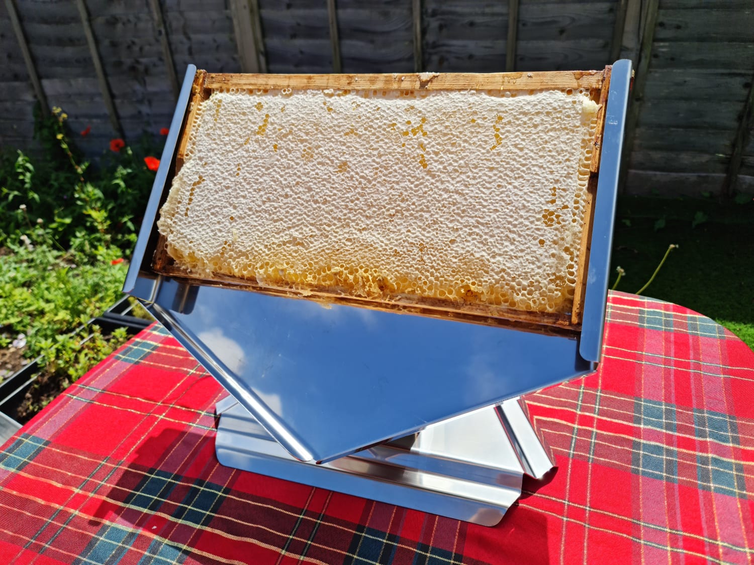 Oferujemy całą ramkę pszczelą wypełnioną naturalnym plastrem miodu, pozyskaną bezpośrednio z pasieki. Miód w plastrze to najczystsza i najbardziej naturalna forma miodu – bez wirowania, bez podgrzewania, bez ingerencji.